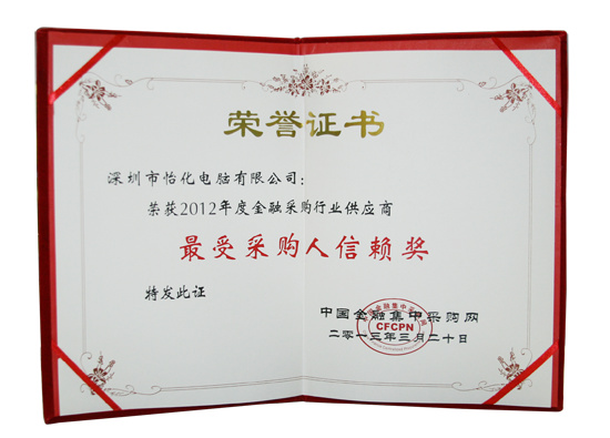 榮獲“2012年度最受金融行業(yè)采購人信賴獎”